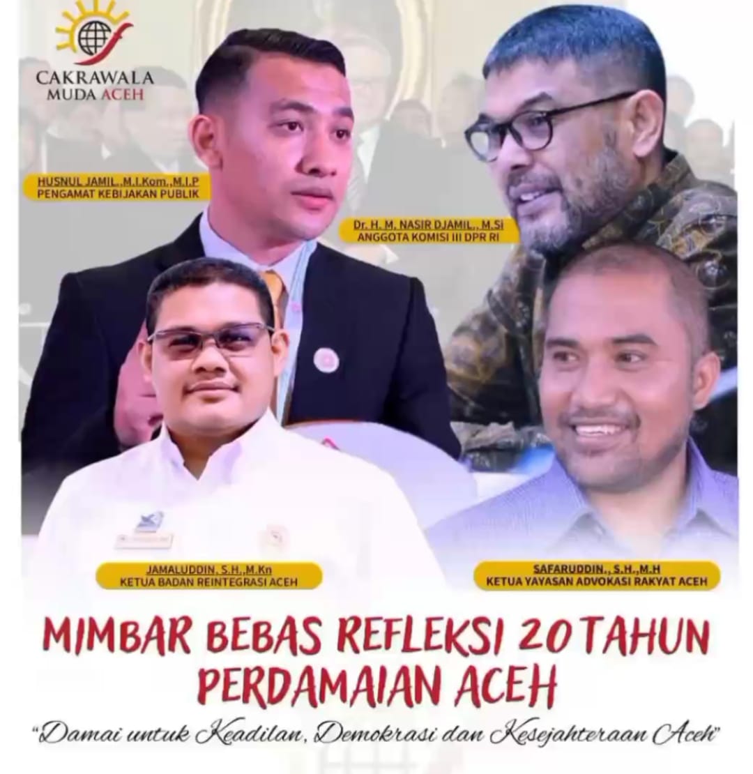 Cakrawala Muda Aceh menyerukan agar peringatan 20 tahun damai tidak hanya menjadi seremoni, tetapi momentum koreksi dan perbaikan nyata untuk masa depan Aceh yang lebih adil dan demokratis.;