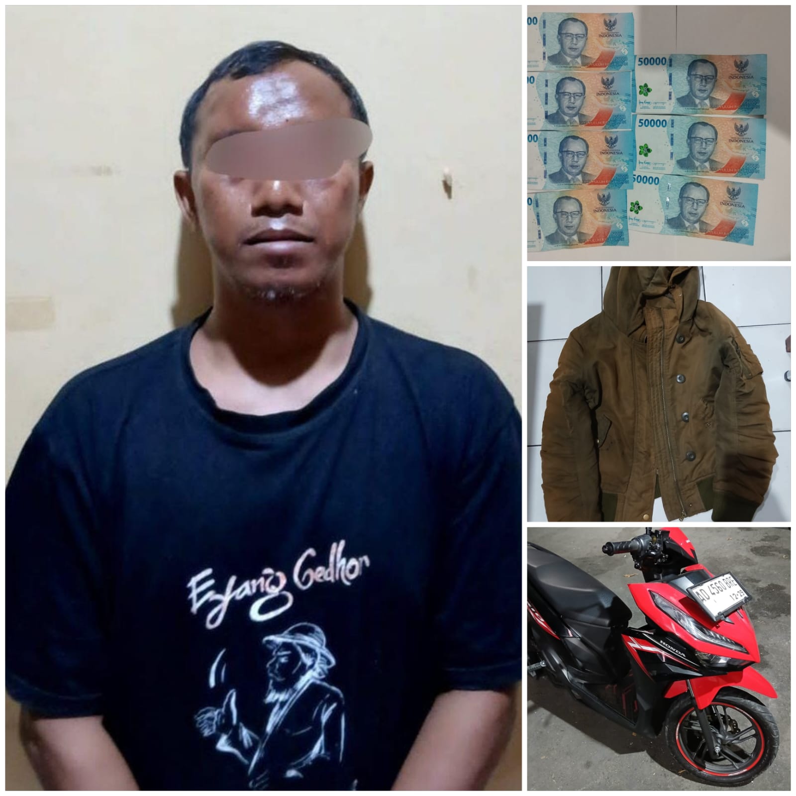 Dari hasil penangkapan, polisi menyita sejumlah barang bukti penting, antara lain satu unit sepeda motor Honda Vario warna merah hitam tahun 2024 beserta STNK dan kunci, uang tunai Rp 350 ribu sisa hasil pencurian, sebuah tas ransel merek Marzel warna hitam dan jaket warna coklat merk Private Pause.