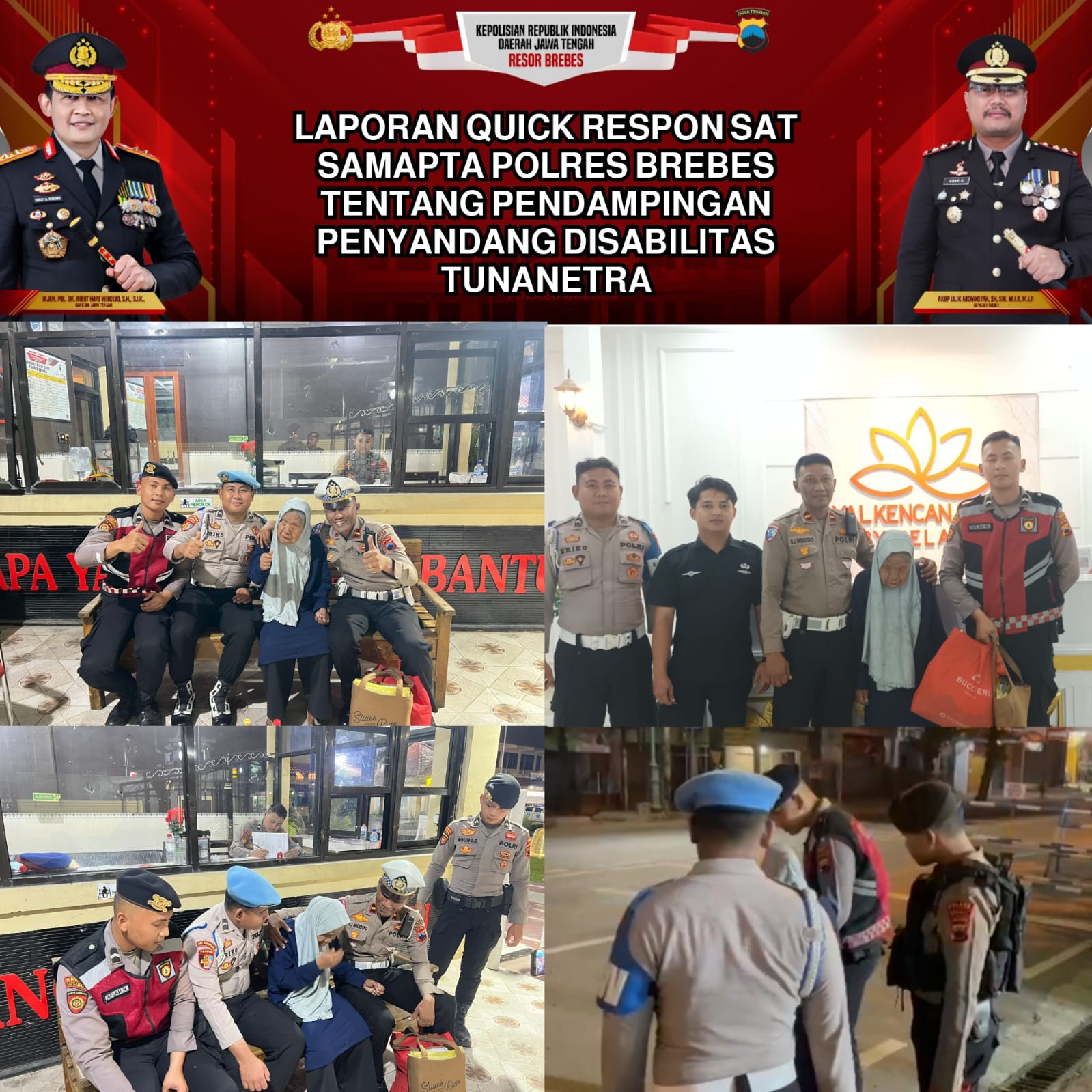 BREBES – Wajah humanis Kepolisian Resor Brebes kembali ditunjukkan oleh personel Satuan Samapta (Sat Samapta). Pada Kamis (9/10/2025) malam, anggota Sat Samapta sigap memberikan pendampingan dan bantuan kepada seorang penyandang disabilitas tunanetra yang kebingungan dan singgah di Markas Komando (Mako) Polres Brebes.