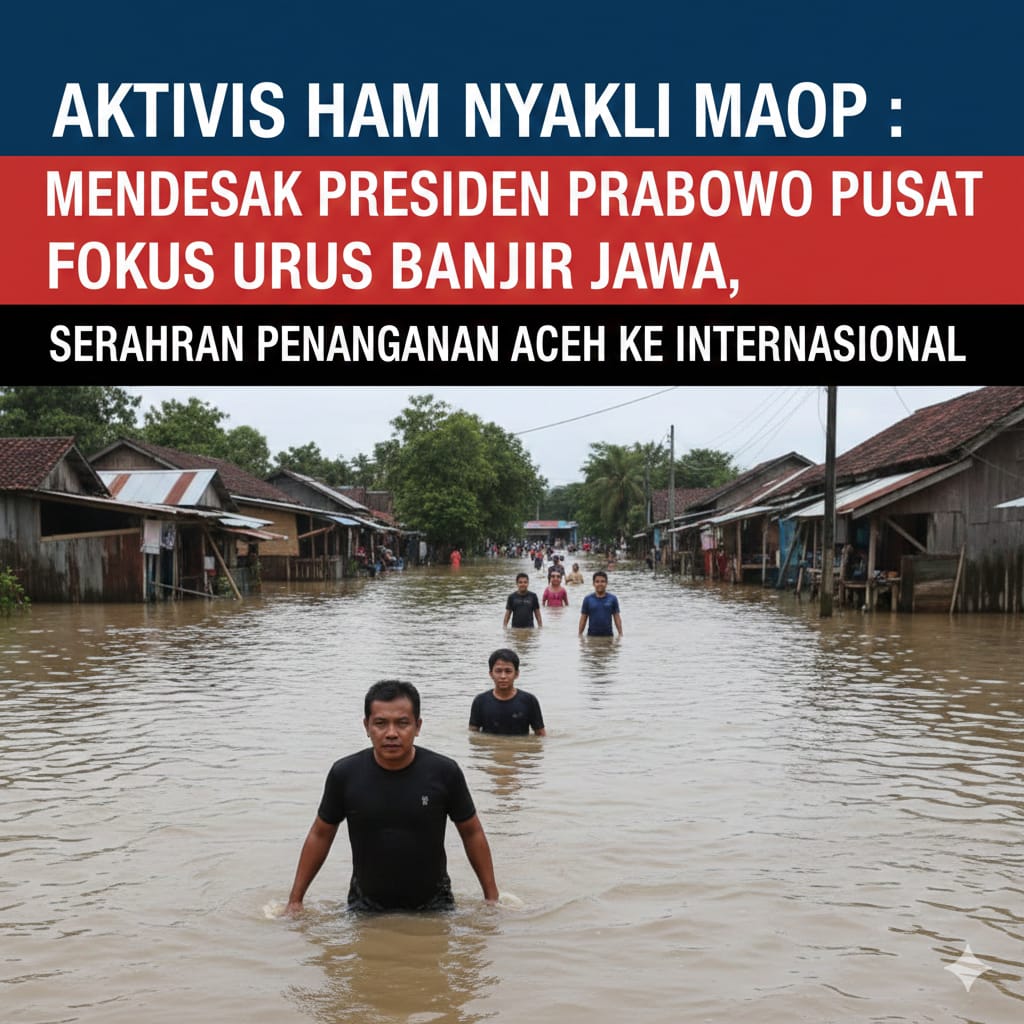 ACEH ( DETIK POST.ID ) – Aktivis Hak Asasi Manusia (HAM), Razali, atau yang akrab disapa Nyakli Maop, meminta Presiden Prabowo Subianto segera menetapkan status bencana nasional untuk wilayah Aceh dan Sumatera. Langkah ini dinilai mendesak menyusul dampak banjir besar yang terus meluas di wilayah tersebut.
