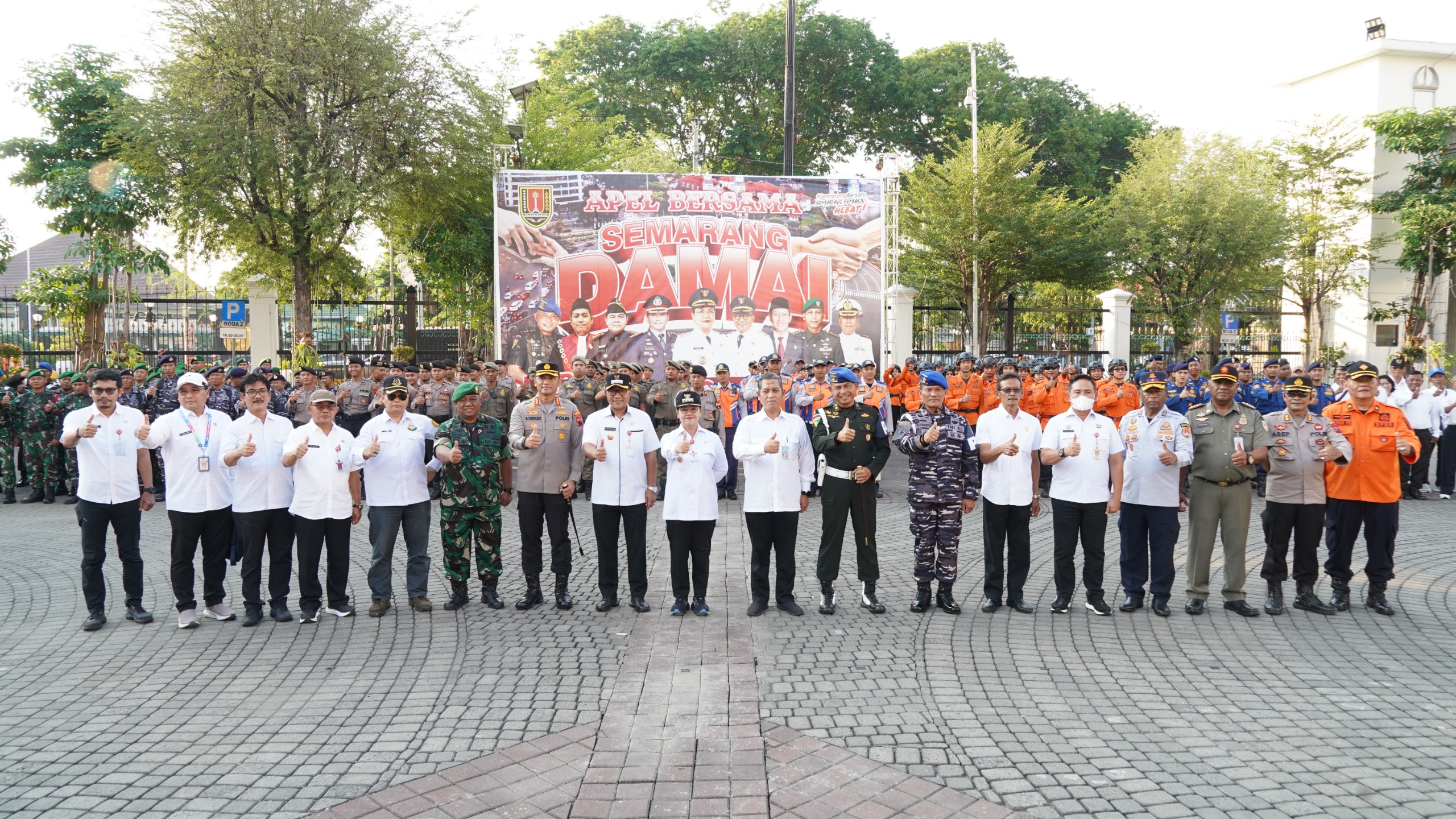 Apel dipimpin oleh Wakasat Samapta Polrestabes Semarang, Kompol R. Justinus, dengan Wali Kota Semarang, Dr. Agustin Wilujeng Pramestuti, SS, MM, bertindak sebagai pembina apel. Sebanyak 350 peserta hadir dari unsur TNI, Polri, Satpol PP, Dishub, BPBD, Dinsos, dan Damkar, lengkap dengan perangkat daerah terkait.