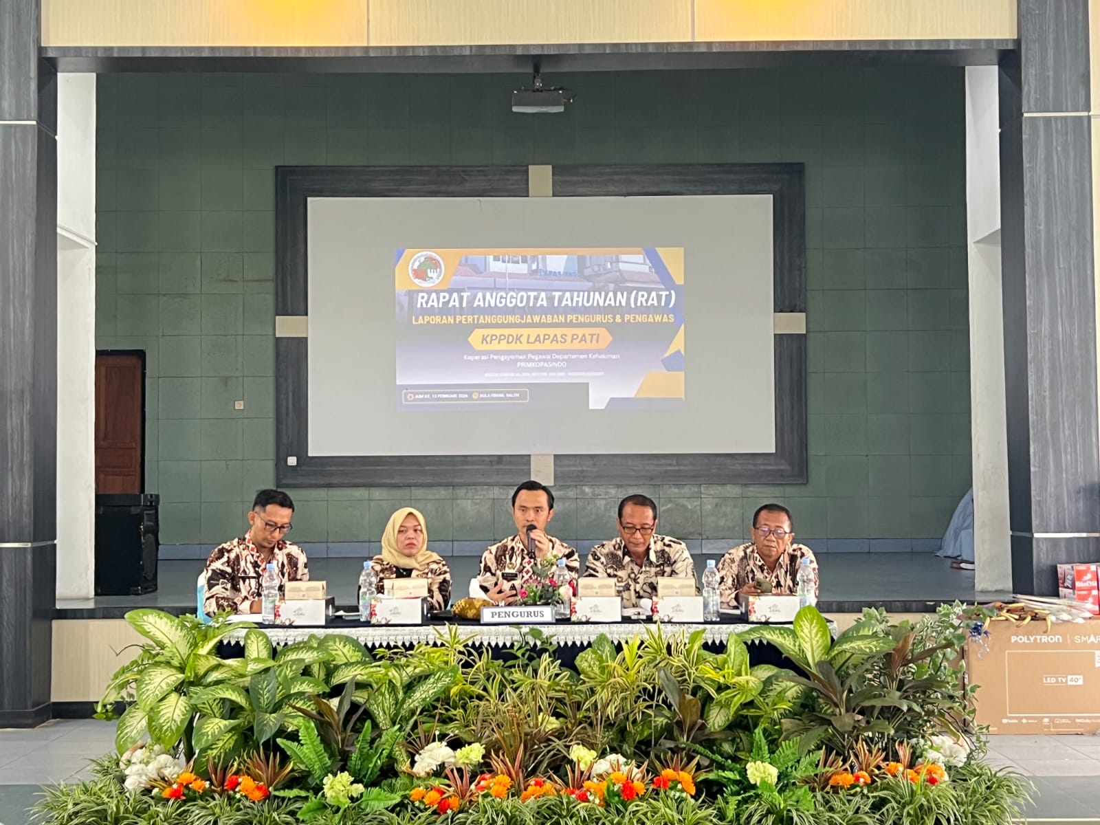 Pati, Jateng – Dalam suasana penuh kebersamaan dan semangat kekeluargaan, Rapat Anggota Tahunan (RAT) Tutup Tahun Buku 2025 KPPDK Lembaga Pemasyarakatan Kelas IIB Pati digelar pada Jumat (13/2) bertempat di Aula Ismail Saleh Lapas Kelas IIB Pati.