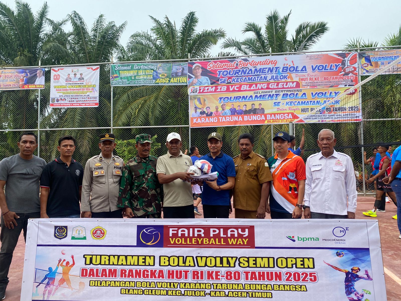Aceh Timur ( DETIK POST.ID ) – Wakil Bupati Aceh Timur T. Zainal Abidin S.Pd.I.,M.H, resmi membuka Turnamen Bola Bolly Se-Kecamatan Julok dalam rangka HUT Republik Indonesia Ke-80 yang digelar di Lapangan Bola Volly Karang Taruna Bunga Bangsa Desa Blang Gleum, Kec Julok, Kab Aceh Timur. Selasa 09 September 2025.