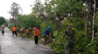 Antisipasi Pohon Tumbang, Babinsa Bersama Relawan Tebangi Pohon Lapuk