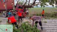 Polsek Pati Kota Evakuasi Pohon Tumbang di Jalur Pantura, Arus Lalu Lintas Kembali Lancar