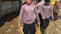 Polri Gelar Gotong Royong Pemulihan Pasca Banjir di Gampong Glee Dagang, Sawang