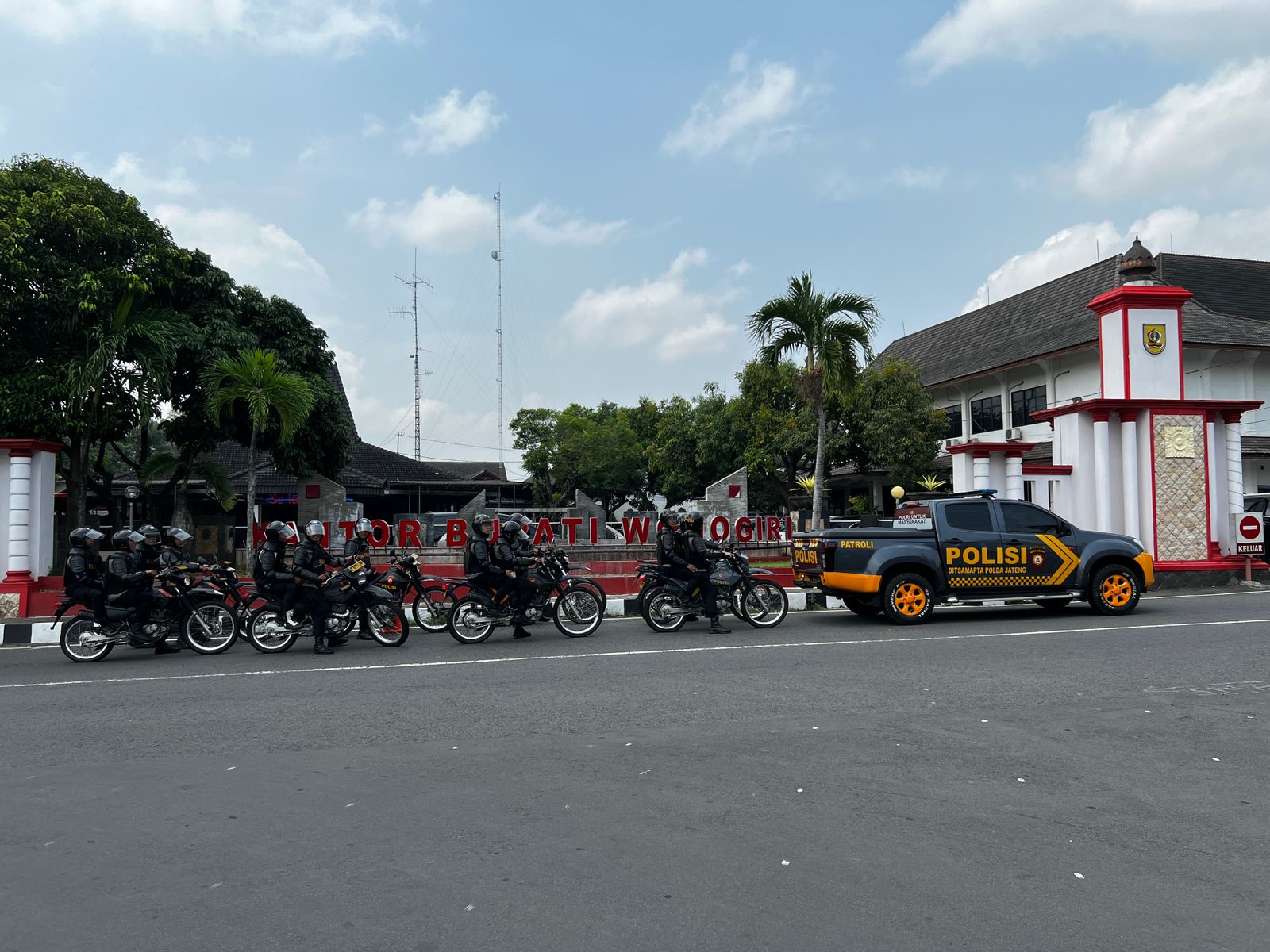 Kegiatan yang dimulai pukul 09.00 WIB ini menyasar rute strategis mulai dari Mako Polres, Jalan Lingkar Kota (JLK), Satpas, Selogiri, hingga pusat-pusat aktivitas masyarakat seperti Alun-Alun, Kantor DPRD, dan Kantor Bupati Wonogiri.