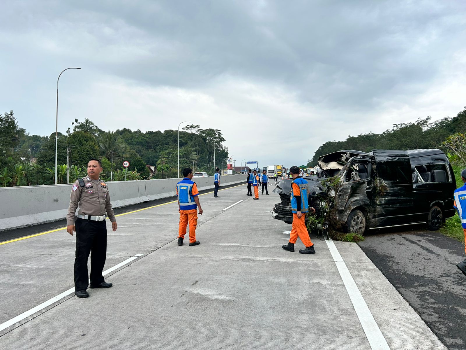 Di kesempatan lain Kanit Gakkum Iptu Handriani SE. MM., menambahkan bahwa kejadian bermula saat mobil Toyota Hiace berisi rombongan dari Jakarta hendak menuju ke Jawa Timur, dan saat di lokasi sopir diduga mengantuk.