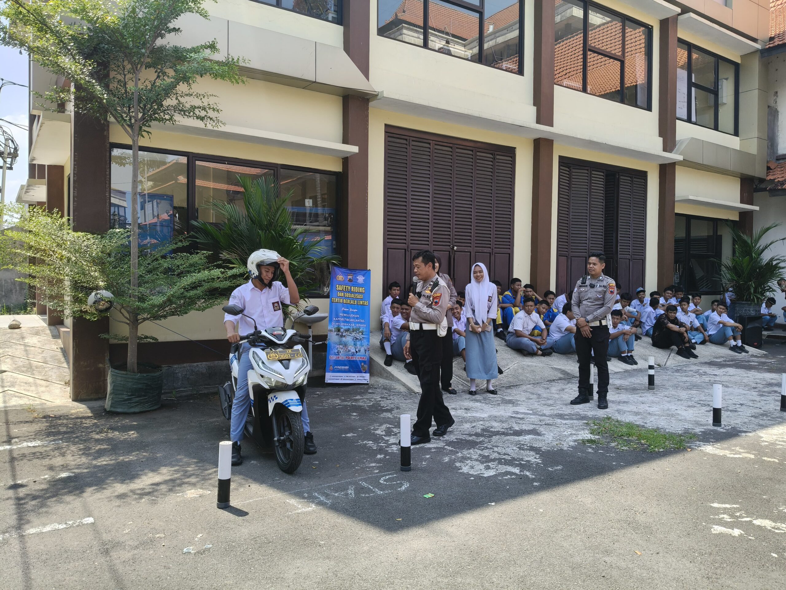 Kasat Lantas Polres Jepara AKP Rahandy Gusti Pradana yang diwakili Kanit Kamsel Ipda Hariyono mengatakan, bahwa kegiatan ini bertujuan untuk membangun pemahaman siswa-siswi tentang safety riding. Selain itu, pihaknya juga berupaya maksimal untuk mencegah gangguan kamtibmas di Kabupaten Jepara yang didominasi remaja.