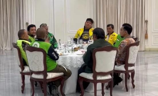 Delapan perwakilan komunitas ojol duduk melingkar bersama Gibran di depan meja bundar dalam istana Wakil Presiden. Masing-masing dari mereka mengenakan jaket seragam perusahaannya, ada yang berwarna hijau hingga kuning.