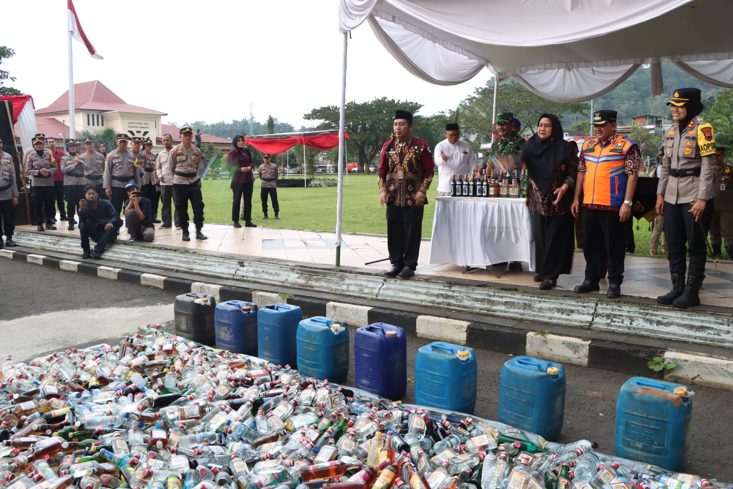Polres Semarang_Polda Jateng –Ciptakan situasi kondusif saat bulan suci Ramadhan, Polres Semarang telah melaksanakan operasi pekat dengan menyita ribuan botol minuman keras (miras) berbagai jenis, dan ratusan liter minuman jenis tuak dalam bentuk jerigen.