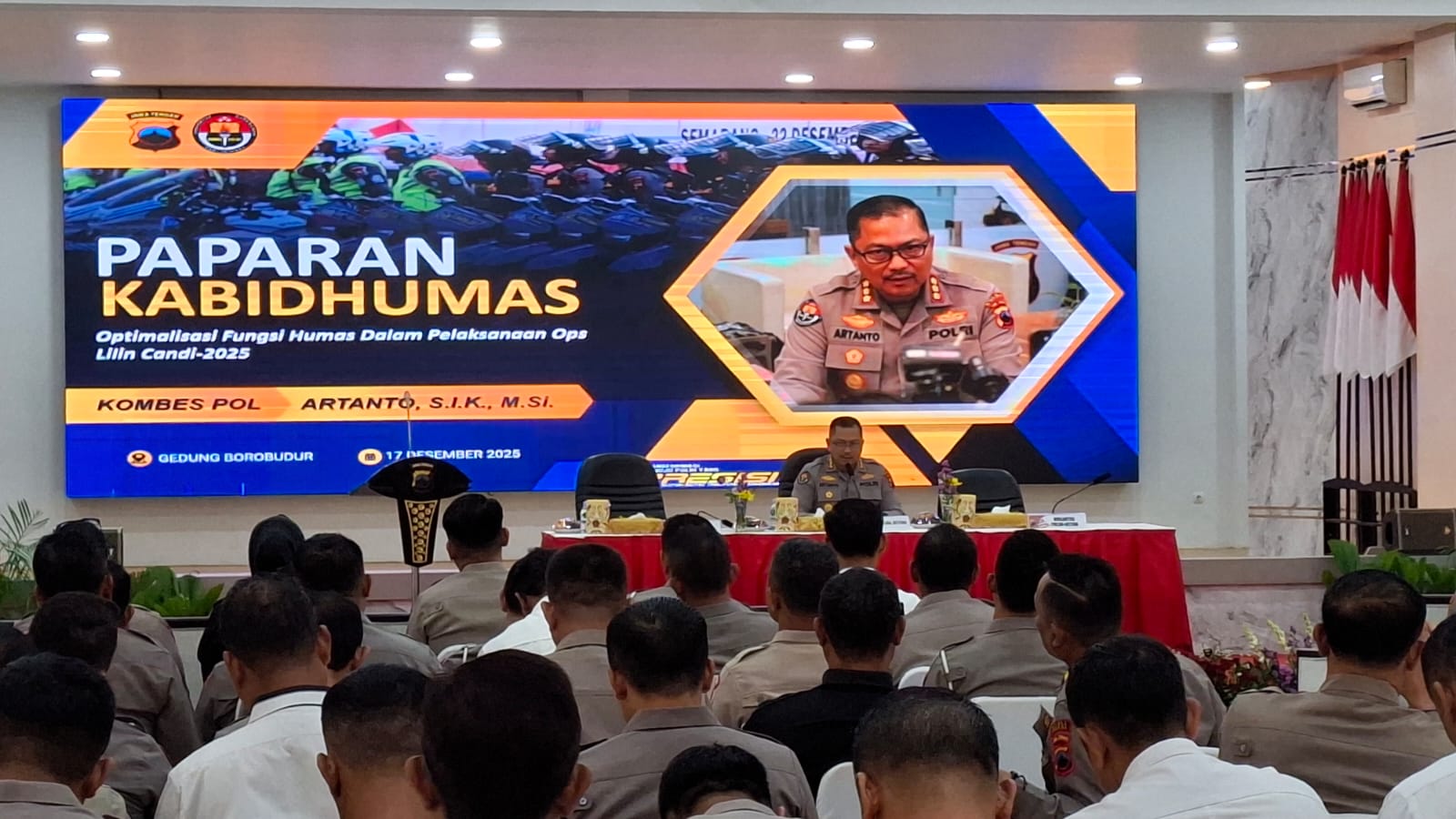 Karo Ops Polda Jateng Kombes Pol Basya Radyananda saat memberikan paparan dalam kegiatan Latihan Pra Operasi (Latpraops) Lilin Candi 2025 di Mapolda Jateng mengungkapkan bahwa puluhan ribu personel tersebut terdiri dari 22.517 personel Polri, 1.235 personel TNI, serta 4.219 personel dari instansi terkait.