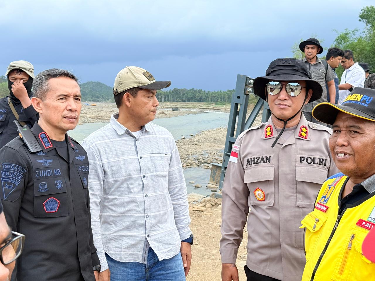 Peninjauan dilakukan oleh Dansatgas Brimob Pengendali Operasi Polda Aceh Kombes Pol Zuhdi Batubara, S.I.K bersama Kapolres Lhokseumawe AKBP Dr. Ahzan, S.H., S.I.K., M.S.M., M.H beserta jajaran pada Jumat (13/3/2026) sekitar pukul 15.00 WIB di jalur penghubung Desa Sawang – Desa Lhok Cut, Kecamatan Sawang, Aceh Utara.