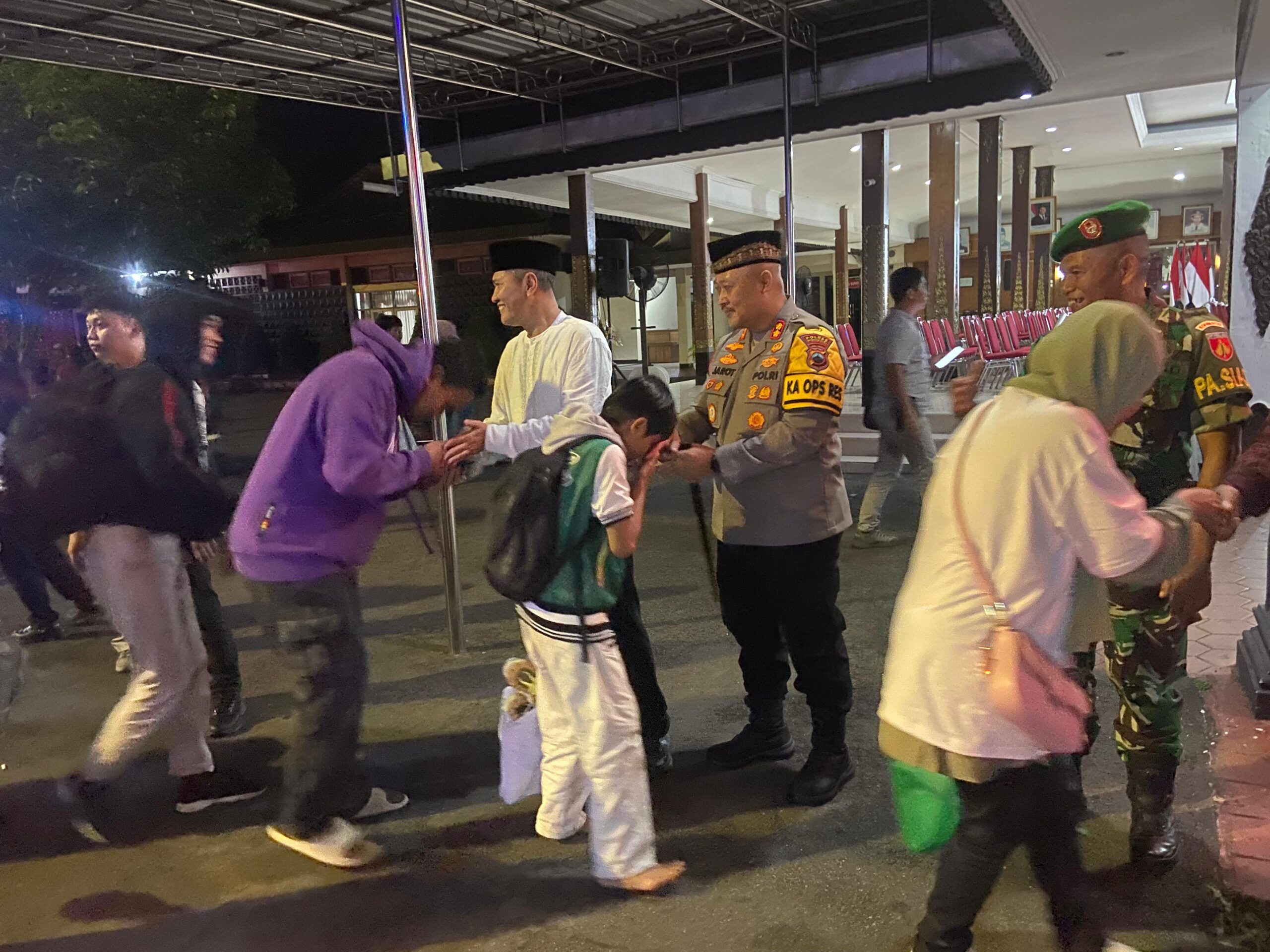 Wonogiri – Kapolres Wonogiri, AKBP Jarot Sungkowo, S.H., S.I.K., bersama jajaran Forkopimda Kabupaten Wonogiri, terima kedatangan rombongan mudik gratis di pendopo rumah dinas Bupati Wonogiri, Rabu malam (26/3/2025).