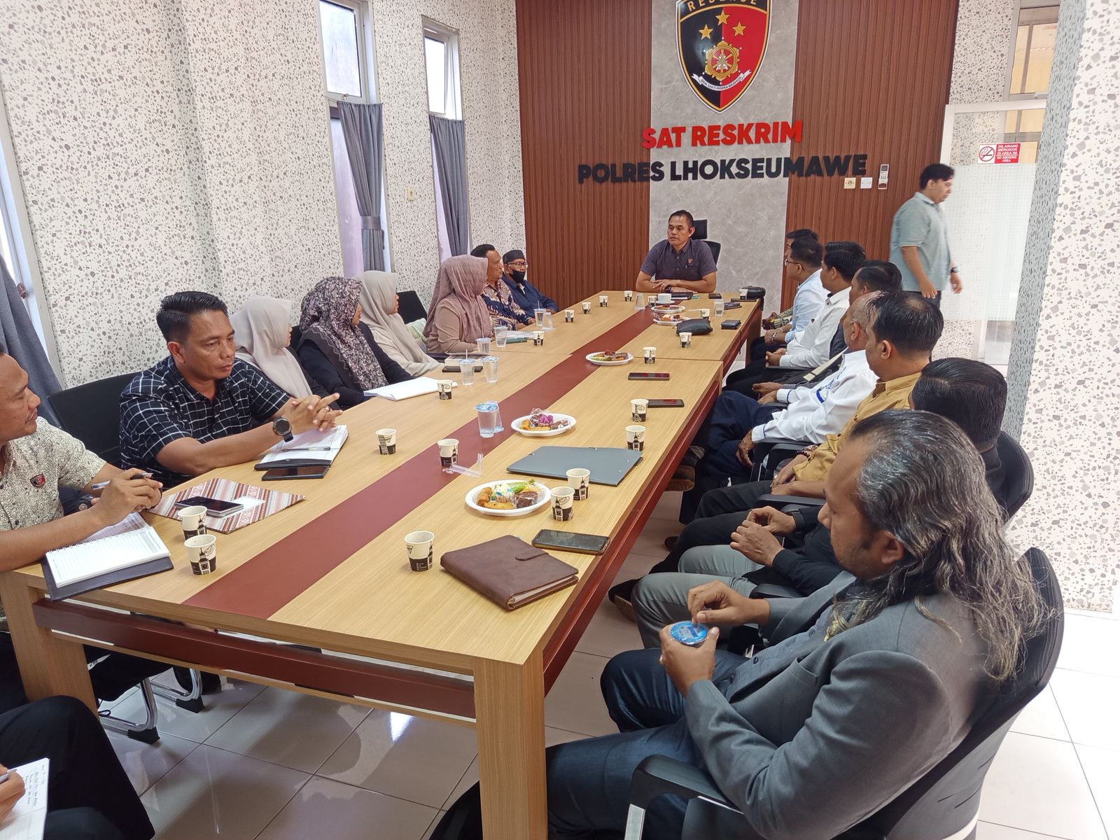 Kegiatan ini dihadiri oleh Kasat Reskrim Polres Lhokseumawe, para Kanit Satreskrim, personel SPKT Polres Lhokseumawe, serta perwakilan dari berbagai LBH dan advokat, di antaranya LBH Syiah Kuala, LBH A.P MU Lhokseumawe, LBH HN & Partners, LBH Srikandi Aceh, YLBH Cakra, LBH HAFAS, LBH Fadri & Rekan, LBH R.C.M., LBH MTP, LBH Adoe & Partner, serta 10 lembaga hukum lainnya.