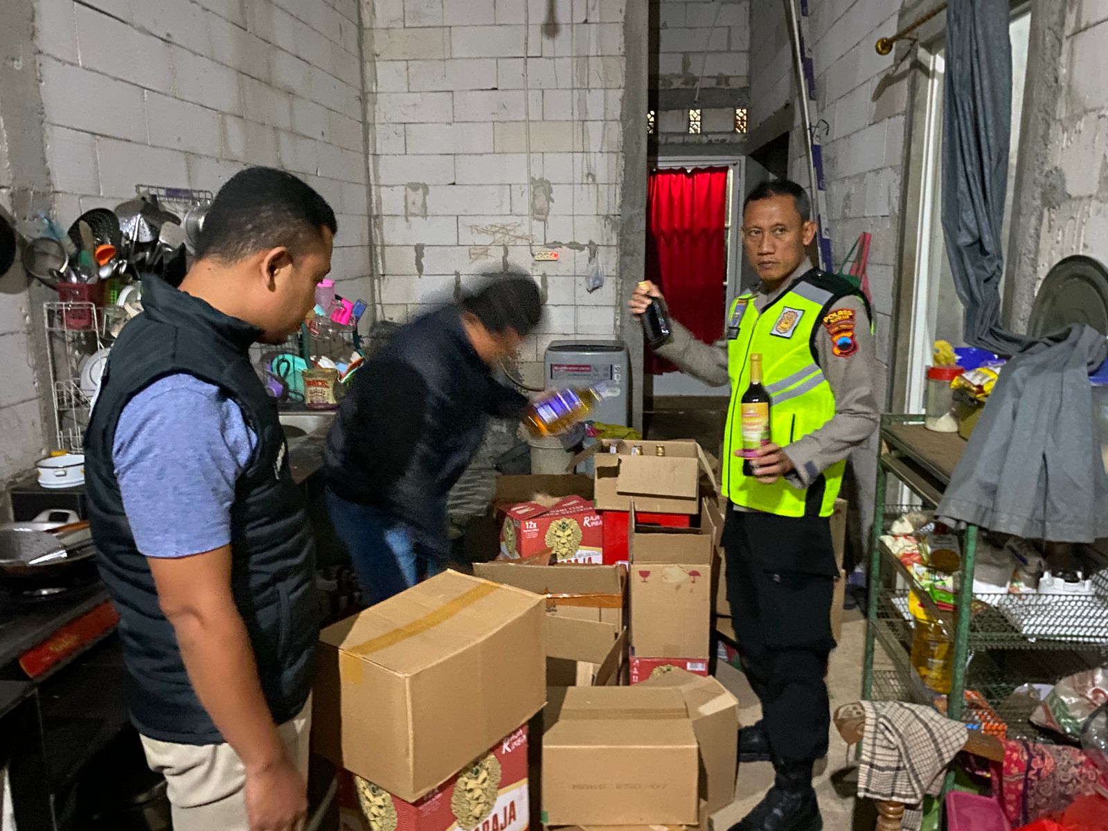 Petugas kemudian melakukan pengecekan dan mendapati sebuah warung yang menjual berbagai jenis minuman beralkohol.