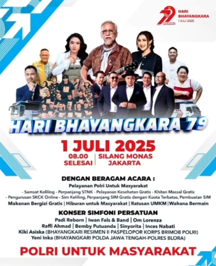 Jakarta – Peringatan Hari Bhayangkara ke-79 yang jatuh pada 1 Juli 2025 berlangsung meriah di Kawasan Silang Monas, Jakarta. Ribuan masyarakat dari berbagai daerah antusias menghadiri acara yang digelar sejak pukul 08.00 WIB hingga selesai.