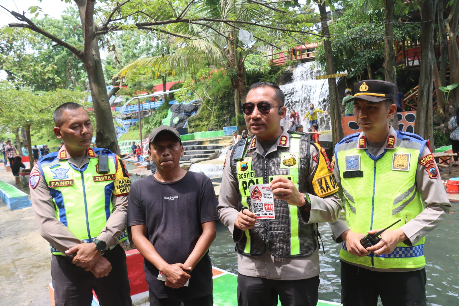 Selain melakukan pengecekan, Kapolres Boyolali juga membagikan stiker imbauan Call Center Polri 110 kepada para pengunjung maupun pengelola obyek wisata.