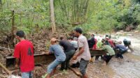 Polisi dan Warga Gotong Royong Bangun Jembatan Darurat di Rusip Antara Aceh Tengah