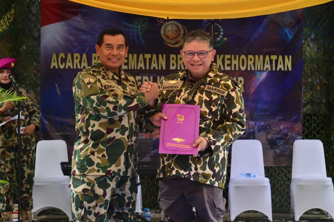 Jakarta, Dispen Kormar TNI Angkatan Laut – Panglima Korps Marinir (Pangkormar) Letnan Jenderal TNI (Mar) Dr. Endi Supardi, S.E., M.M., M.Tr.Opsla., CHRMP., CRMP., resmi sematkan Brefet Kehormatan Kavaleri Korps Marinir TNI Angkatan Laut kepada Pejabat Kejaksaan Agung (Kejagung) RI, dan Kementerian Perdagangan (Kemendag) RI di Lapangan Tembak Jusman Puger Kesatrian Marinir Hartono Cilandak, Jakarta Selatan, Rabu (05/11/2025).