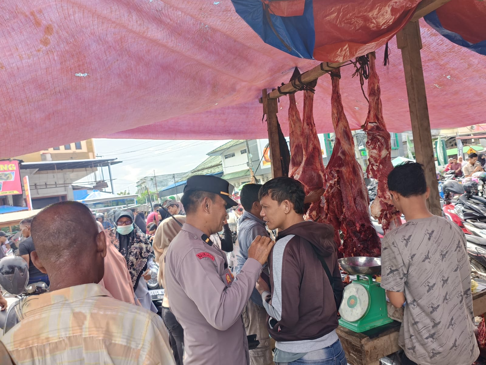 Selain melakukan patroli dialogis, personel juga mengatur arus lalu lintas di sekitar pasar guna mencegah kemacetan akibat lonjakan kendaraan. Kehadiran polisi di tengah keramaian memberikan rasa aman bagi masyarakat yang sedang berbelanja kebutuhan menyambut Ramadan.