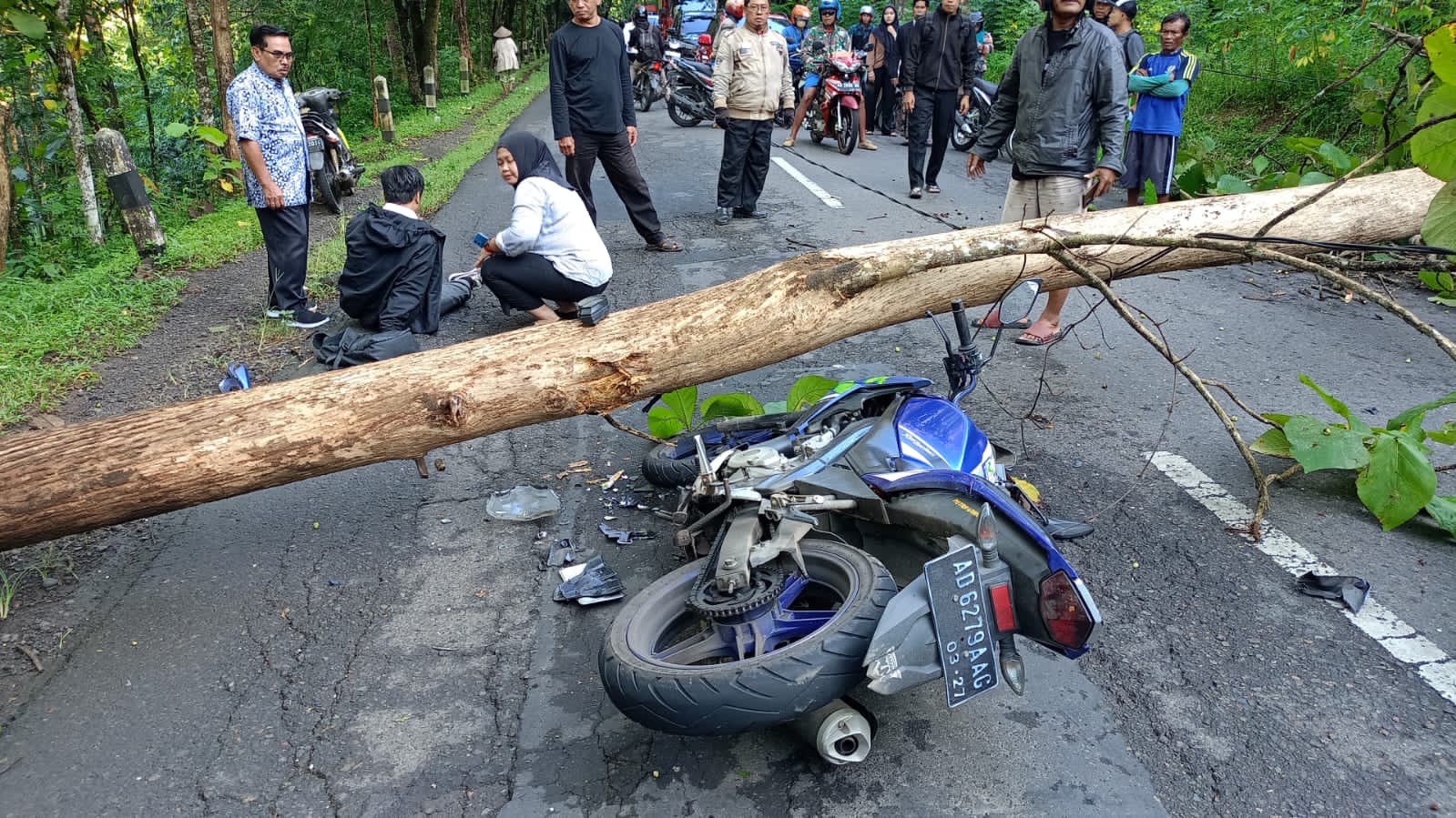 “Karena jarak yang sudah dekat, pengendara tidak sempat menghindar sehingga menabrak batang pohon tersebut dan mengalami luka-luka,” jelas Kapolsek.