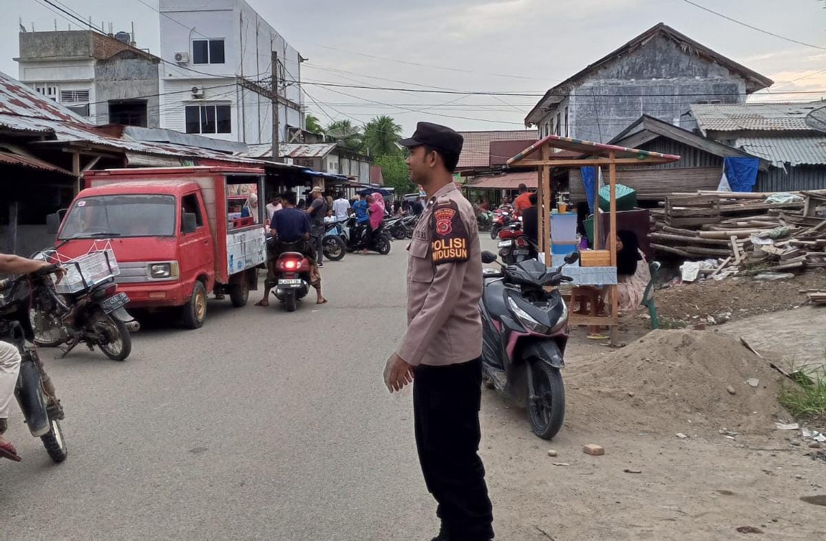 Kegiatan yang dimulai sekitar pukul 16.30 WIB tersebut melibatkan dua personel Polsek Sawang yang ditempatkan di titik keramaian guna mengatur arus kendaraan serta mengamankan aktivitas masyarakat di kawasan pasar yang dipadati pedagang dan pembeli takjil.