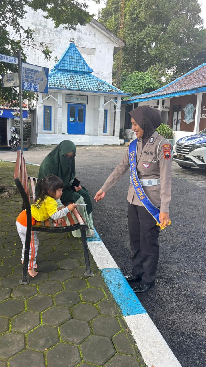 Kegiatan sederhana dan penuh kehangatan ini dilakukan sebagai bentuk kedekatan Polantas dengan warga, khususnya mereka yang datang untuk mengurus pajak tahunan. Petugas menyapa, berbincang ringan, sekaligus memberikan coklat sebagai simbol perhatian dan kepedulian.