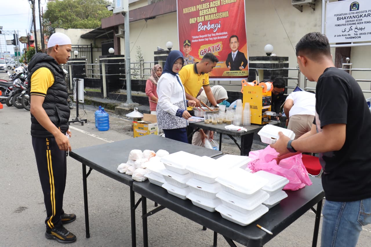 Aceh Tengah ( DetikPost.id ) — Polres Aceh Tengah kembali menggelar kegiatan sosial bertajuk “Jum’at Berbagi” dengan membagikan makanan bergizi berupa bubur susu kacang hijau kepada masyarakat di depan Mako Polres Aceh Tengah, Jumat (17/4/2026) pagi.