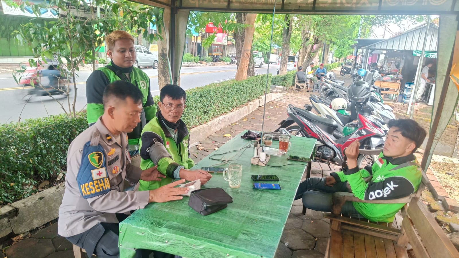 Sementara itu, salah satu pengemudi Ojol, Sutrisno (35), mengaku senang dengan adanya pelayanan kesehatan gratis ini.