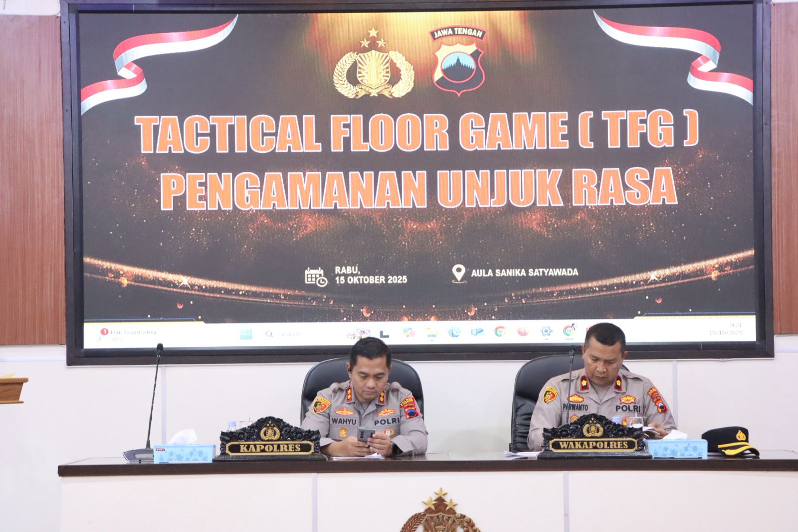 Wonogiri – Tingkatkan kemampuan dan kesiapsiagaan personel menghadapi dinamika situasi di lapangan, Polres Wonogiri menggelar Pelatihan Tactical Floor Game (TFG) Pengamanan Unjuk Rasa Tahun 2025, Rabu (15/10/2025), bertempat di Aula Wanita Satyawada Polres Wonogiri.