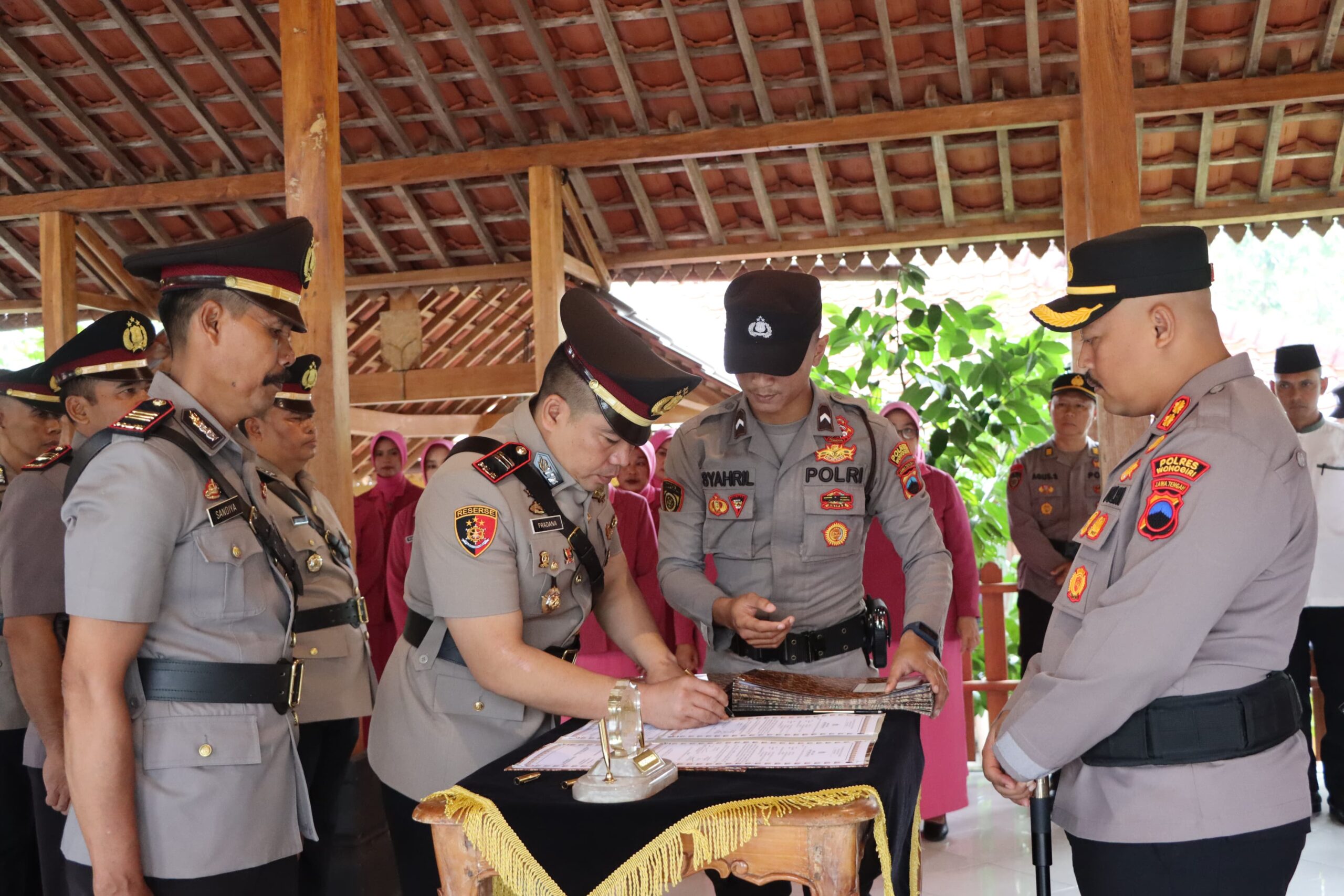 Bertempat di RM. Dalem Norogo, Pokoh Kidul, Wonogiri, sertijab dipimpin oleh Kapolres Wonogiri AKBP Jarot Sungkowo, S.H., M.H., dan dihadiri Wakapolres, Kapolsek jajaran serta pejabat utama di lingkungan Polres Wonogiri.