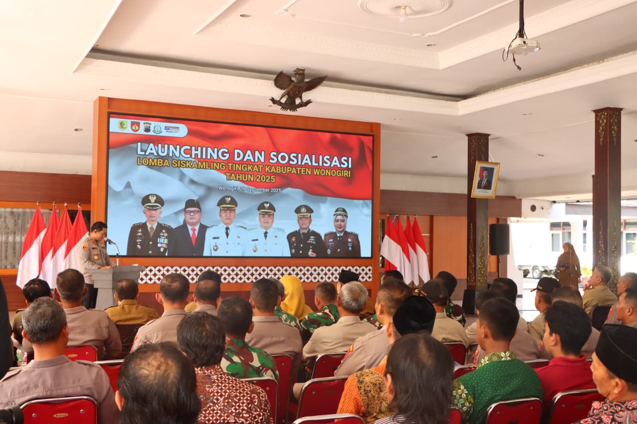 Wonogiri – Polres Wonogiri menginisiasi pelaksanaan Lomba Siskamling Tingkat Kabupaten Wonogiri Tahun 2025 yang resmi dilaunching pada Senin (29/9/2025) di Pendopo Rumah Dinas Bupati Wonogiri. Acara dihadiri sekitar 80 peserta dari unsur Forkopimda, OPD, camat, hingga perwakilan ormas dan OKP.