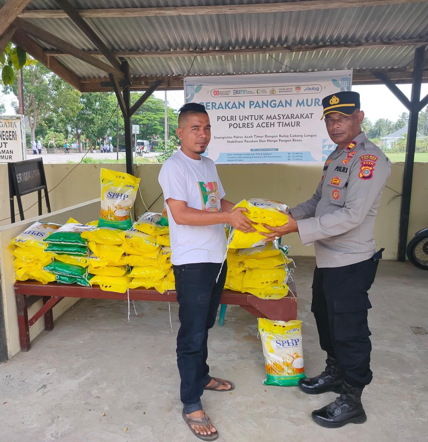 Puluhan warga tersebut datang berburu beras murah dari Bulog yang disalurkan melalui kepolisian di setiap polsek yang ada di wilayah hukum Polres Aceh Timur.