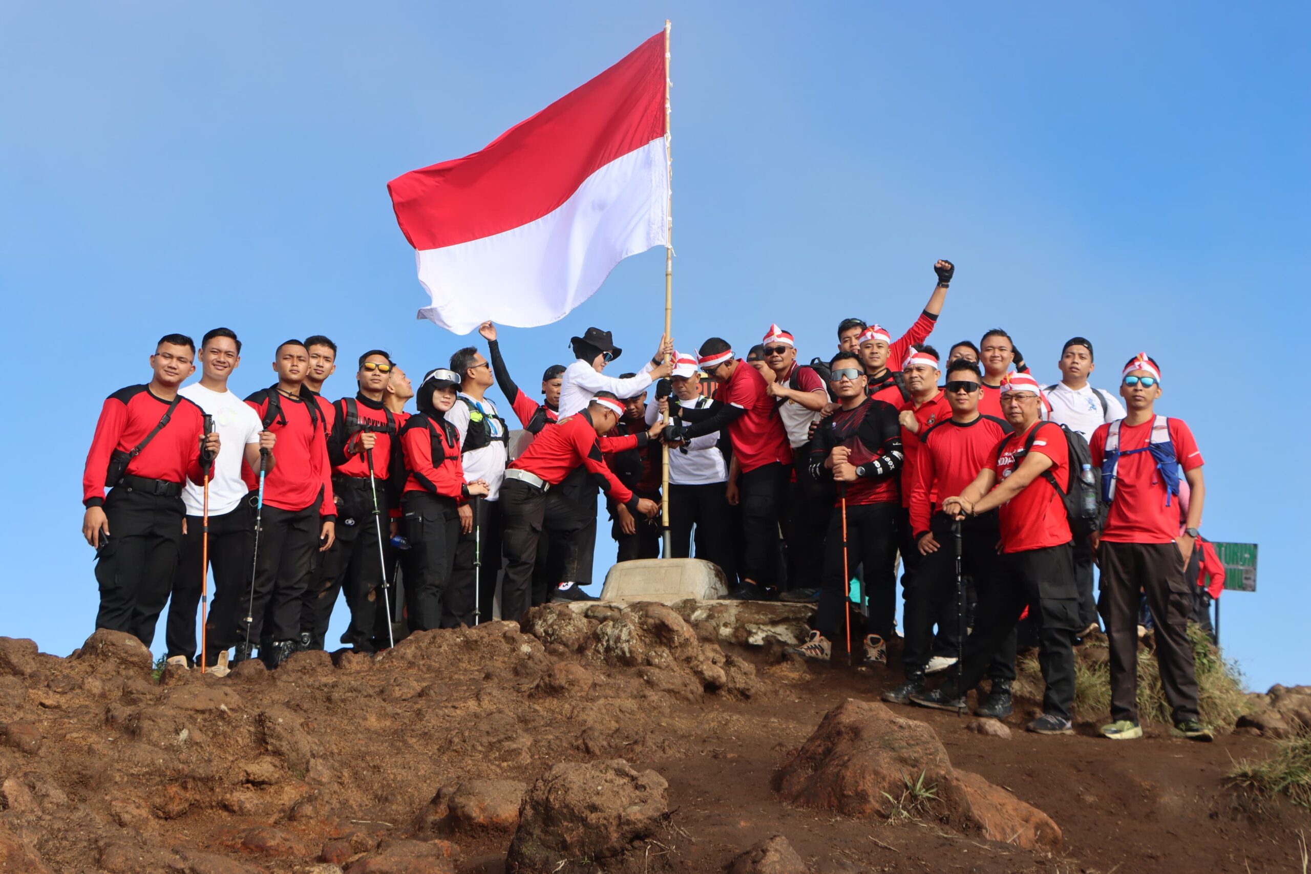 Sesampainya di puncak, prosesi pengibaran bendera Merah Putih dilakukan dengan khidmat, disertai penghormatan dan nyanyian lagu kebangsaan Indonesia Raya. Suasana haru dan bangga terasa menyelimuti seluruh peserta, mengingat lokasi puncak gunung yang menjadi saksi tekad dan semangat menjaga persatuan serta nasionalisme.