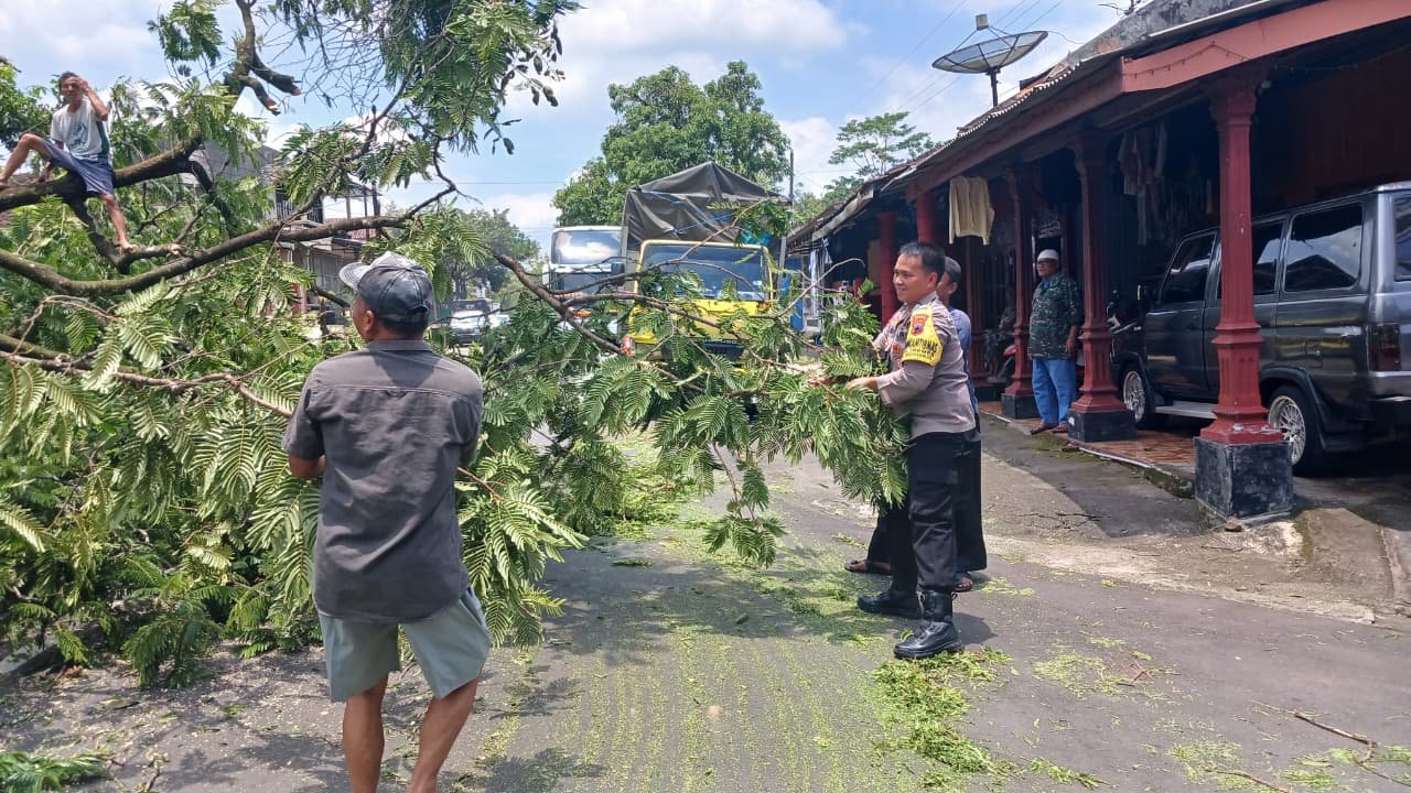 Kejadian tersebut bermula saat petugas piket Polsek Sidoharjo menerima laporan dari masyarakat terkait adanya pohon milik warga bernama Domo yang tumbang dan melintang di badan jalan sehingga berpotensi mengganggu aktivitas warga.