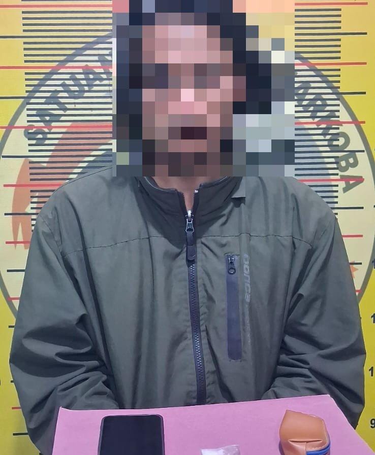 Dari tangan tersangka, petugas mengamankan barang bukti berupa satu paket yang diduga sabu dengan berat bruto 2,13 gram, satu unit telepon genggam, tas selempang warna hitam, serta dompet berwarna cokelat.