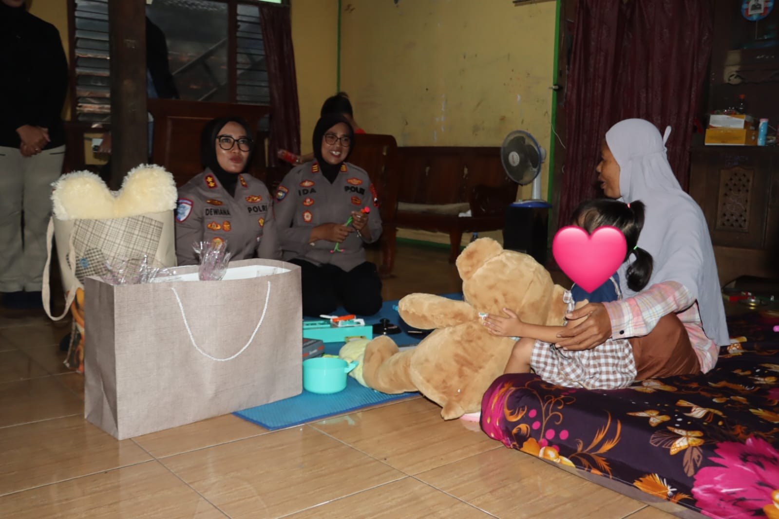 AKBP Dewiana dengan penuh kelembutan menyapa dan berinteraksi, memastikan bahwa korban tidak merasa sendiri.