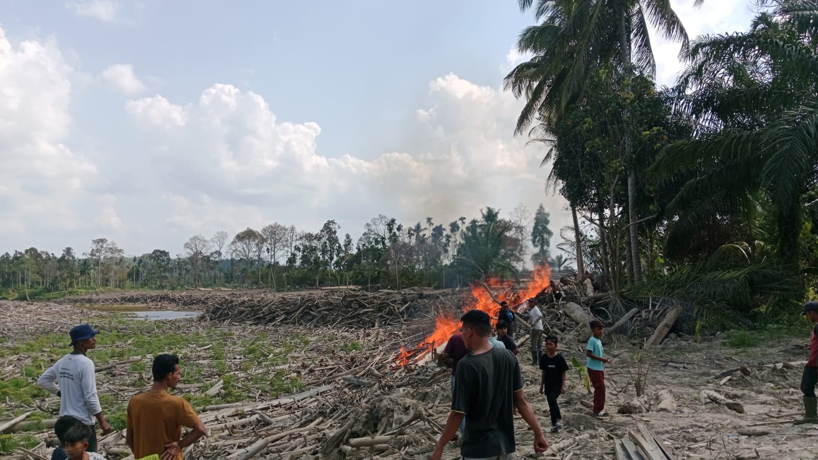 TUMPUKAN KAYU SISA BANJIR DI DESA GEUDUMBAK TERBAKAR – MASYARAKAT MEMINTA BNPB DAN PEMERINTAH ACEH JANGAN TUTUP MATA