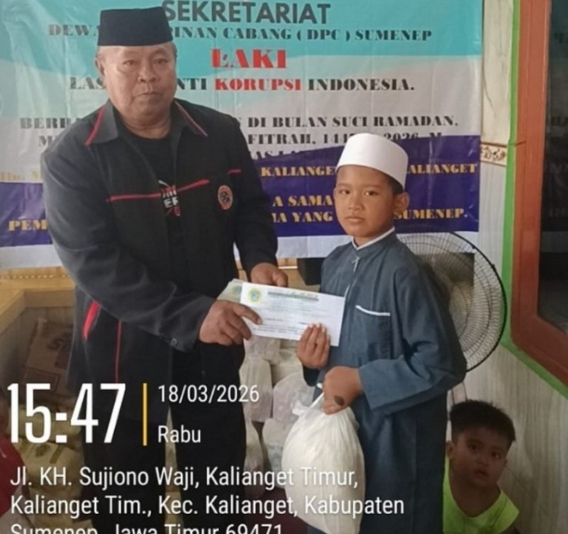 SUMENEP, Detikpost.id – Dalam rangka menguatkan sollidaritas dan kepedulian sosial, Dewan Pimpinan Cabang Laskar Anti Korupsi Indonesia (DPC LAKI) Sumenep, Jawa Timur, kembali menunjukkan komitmennya sebagai lembaga kontrol sosial melalui kegiatan sosial. Salah satunya, dengan menyalurkan zakat fitrah kepada masyarakat yang membutuhkan, Rabu (18/3/2026) sore.